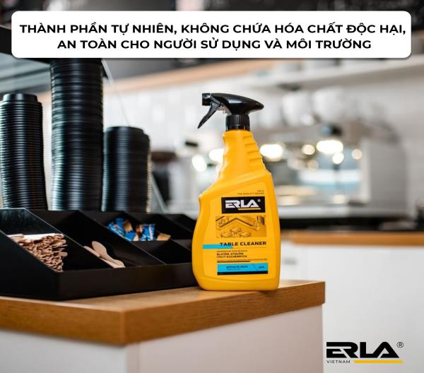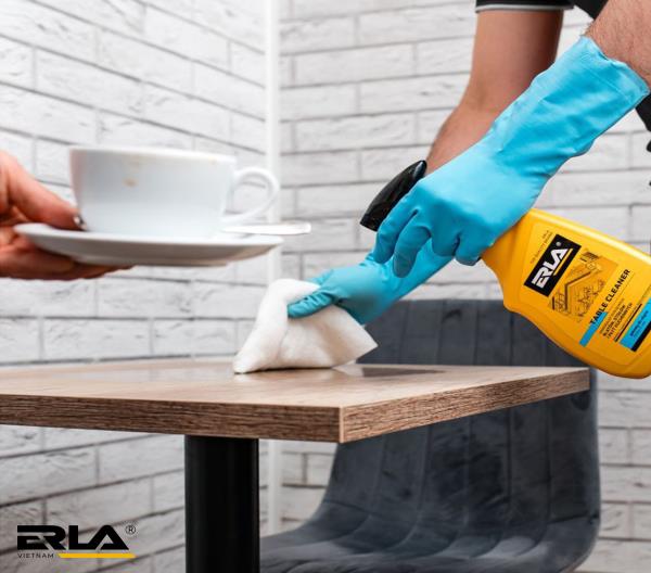 Giữ gìn không gian ăn uống luôn sạch sẽ, chuyên nghiệp là ưu tiên hàng đầu của bất kỳ nhà hàng, quán cà phê hay cửa hàng nào. Nước lau bàn ERLA mang đến giải pháp vệ sinh tiện lợi, giúp loại bỏ nhanh chóng bụi bẩn, vết bám cứng đầu mà không ảnh hưởng đến bề mặt bàn, quầy hay ghế.