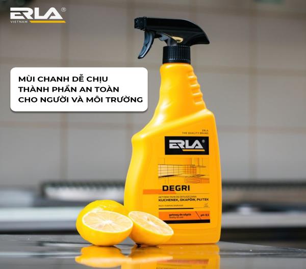 Erla Degri là dung dịch tẩy dầu mỡ chuyên dụng, giúp làm sạch hiệu quả các vết dầu mỡ cứng đầu trong gian bếp một cách dễ dàng. Với công thức hoạt tính mạnh mẽ, sản phẩm nhanh chóng hòa tan và loại bỏ chất béo, đồng thời an toàn cho mọi bề mặt.