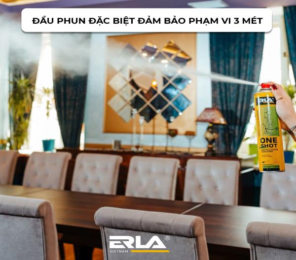 Với đầu phun đặc biệt có tầm phủ lên đến 3 mét, One Shot lý tưởng cho những không gian rộng như phòng tập gym, khách sạn, phòng hội nghị, cửa hàng, hành lang hay khu vực vệ sinh. Chỉ một lần xịt là đủ để thanh lọc không khí, giúp bạn thoát khỏi mùi khó chịu của nước tiểu, khói thuốc, ẩm mốc, mồ hôi và nhiều mùi khác.